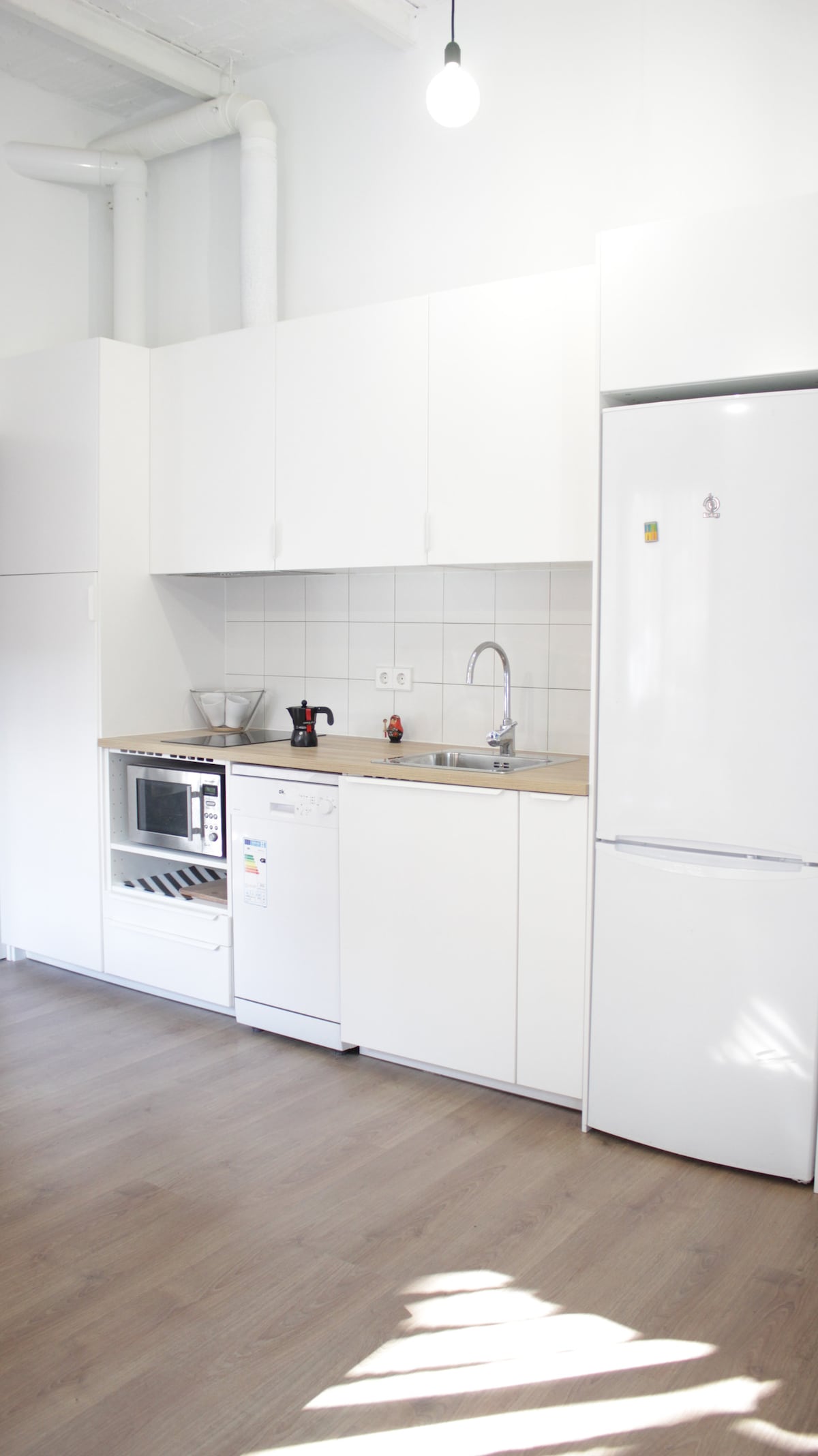 Totally refurbished loft with modern features but with a cosy feeling. The outdoor patio is very rare to find in central Madrid. Spacious layout and very high ceiling. Double glazing, individual gas heating, kitchen fully equipped .Double good mattress bed. Is very quiet. You don’t hear a noise despite being at one of the trendiest area, full of restaurants shops and fashionable bars. Temporary rental for non-tourist purposes. Online registration and contract signing are mandatory.