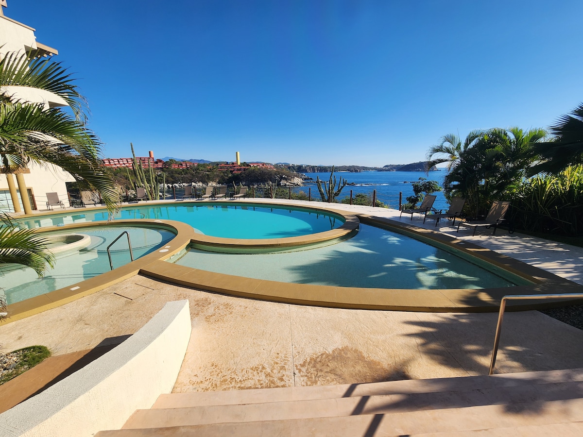 Villa 'Casa De Las Olas' overlooking the pacific in the most exclusive bay of Huatulco, Ocean view rooms accommodating a maximum number of 12 people. Lounge in several of the ocean and pool view terraces and patio furniture. Large kitchen to dine, or mix drinks by the pool side bar area. Just 5 minute drive from beaches, shopping, and restaurants. Sleeps up to 12, Price is based on occupancy #.