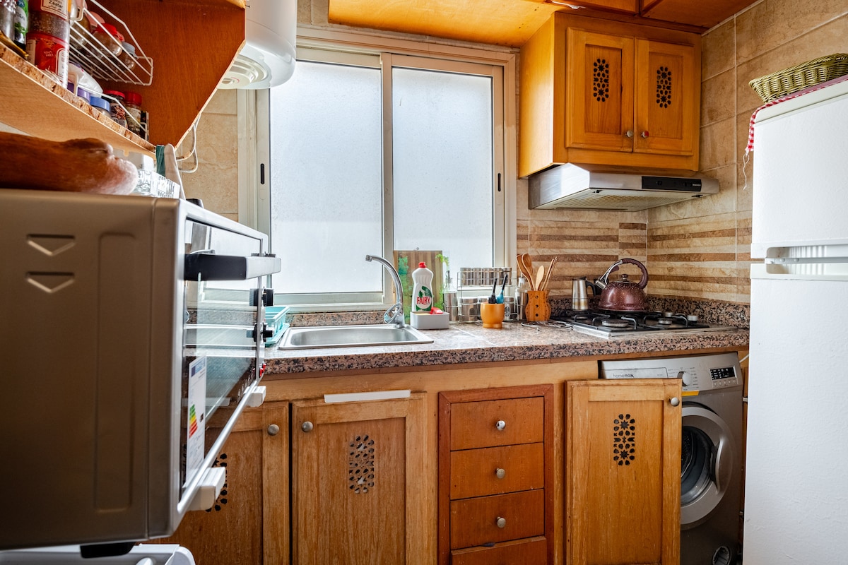 You will appreciate my accommodation for its bright rooms and its outdoor spaces. The apartment is perfect for couples, and business trips, a double room with a large terrace of 12 m² where you could enjoy moments of relaxation around a tea or a drink. The living room is a rest area (Smart-Tv + NETFLIX) and work area (desk + printer). Near the city center and the old Medina, the area is well served by transport and busy with small shops, bars and snacks.