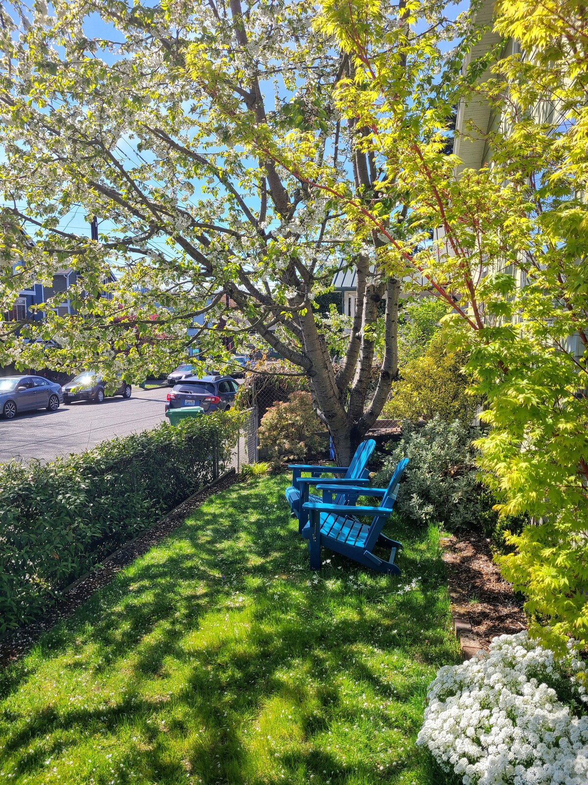 Our cottage has an open loft style floor plan. Spacious, quiet, and light filled. 1.5 baths and 2 stories. Modern and elegant finishes on everything. Main floor has 1/2 bath off kitchen, and there is a full bathroom with shower near the bed located upstairs. It is a stand alone “guest house” in the back yard of the main house. Private parking right in front of the front door! Yard has fire pit, outdoor furniture and BBQ. A hidden oasis, right in the middle of the Ballard neighborhood.