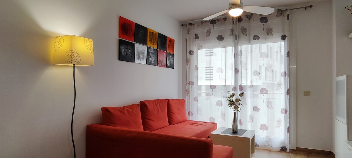 🌟 CON PARKING 🌟 Apartamento super equipado en zona central Paseo Marítimo Pau Casals. Bonito y funcional 40m de la playa. Parking, cocina completa: Microondas, tostadora, cafetera, batidora, comedor y dormitorio en un ambiente. Baño completo y terraza grande con mesa y sillones. Aire acondicionado, WIFI, SMART TV, radiadores, ascensor. Sofacama nuevo 'queen size' de 160x210cm. Y cama supletoria de 200x90 para niños, SÓLO RESERVA 3 personas. ¡PLAYA A 1 MINUTO!!