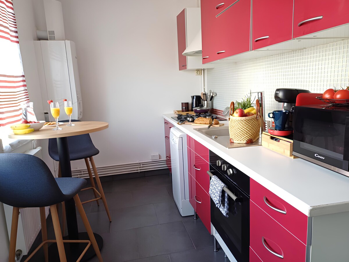 Our lovely 70 m² apartment located in the heart of the Vallée des Vignes will suit you with its comfort. The residential area is ideal for resting and enjoying with the family, or for isolation in a peaceful and pleasant setting. Located 5 minutes walk from several shops and restaurants and 600 m from a shopping center, the city center is also accessible in 10 minutes by car. A bus stop located 2 minutes from the accommodation also allows you to get there.