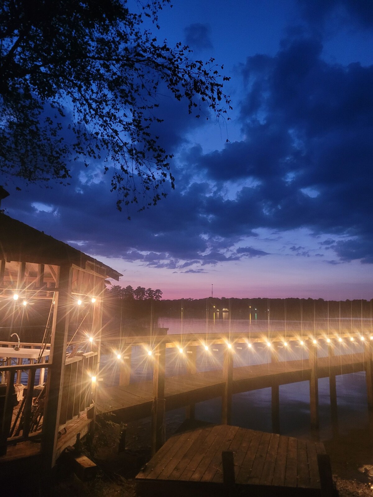 Honey Hole - naplementék. Csendes. Szép terasz és dokk.