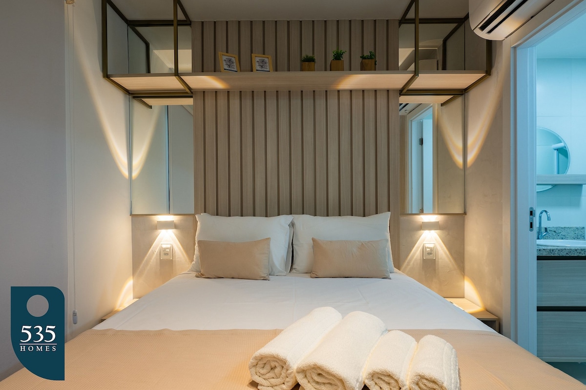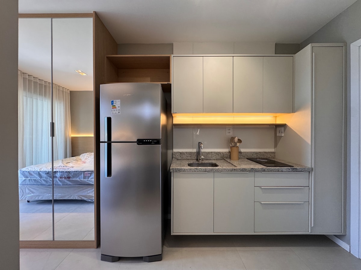 Fogadj vendégeket egy vadonatúj, modern és teljesen felszerelt stúdióban! Élvezd a légkondicionálást, a csodálatos kilátást és a kiváló elhelyezkedést: bevásárlóközpontok, konferenciaközpont, kórházak és metró közelében. Biztonságos, kényelmes és ideális környezet a pihenéshez vagy a munkához. Completo, Wi-Fi-vel, smartv-vel, elektronikus zárral, mosógéppel és szárítógéppel, szűrővel és eszpresszógéppel. Társasházi lakás úszómedencével, fitnesszel, coworkinggel és forgó garázzsal. Tökéletes azok számára, akik értékelik a jóllétet, a praktikusságot és a stílust