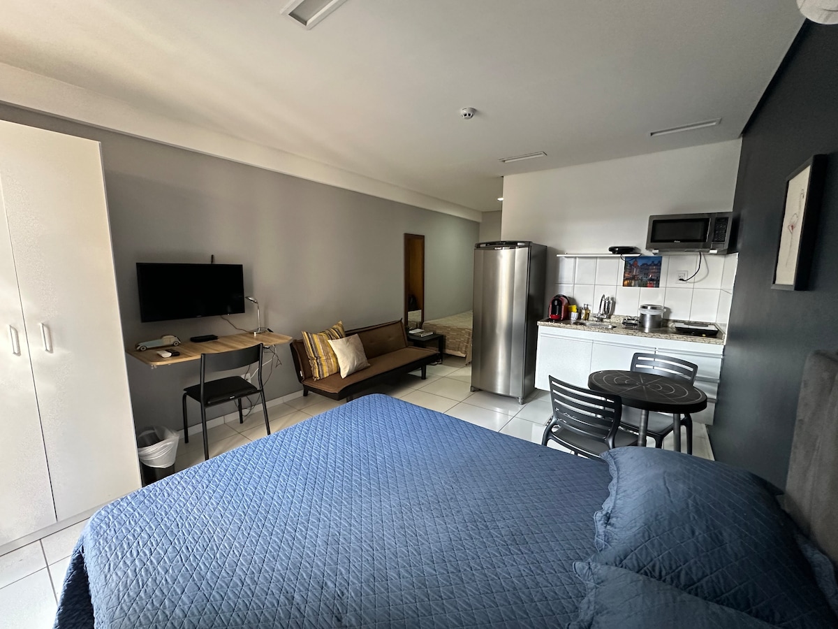 Üdvözlöm, a szállás egy stúdió, kétszemélyes ággyal + egyszemélyes ággyal, valamint egy konyhával, amelyben fagymentes hűtőszekrény, mikrohullámú sütő, kávéfőző, okos TV és számos kényelmes tartózkodást biztosító eszköz található. Szinte minden felszerelés és bútor új. A város fő üzleti negyedében található, néhány méterre a Shopping Salvadortól. ÉRKEZÉS: 14 órától. (Ha 14:00 előtt kell bejelentkezned, nézd meg az elérhetőséget) TÁVOZÁS: DÉL * 1 parkolóhely