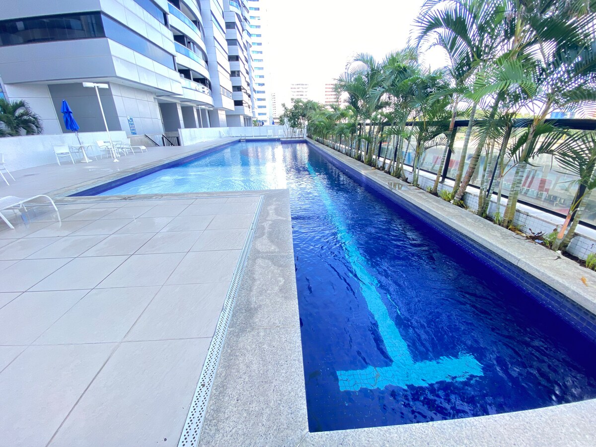 Pihenj az egész családdal ebben a csendes otthonban. Lakás az Ondina strandon (az utca túloldalán, és tedd a lábad a homokba)🏖. Nagyon közel a Barra Ondina Carnival Circuithez, közel a Barra világítótoronyhoz és a Barra bevásárlóközponthoz (bájos, kifinomult és ínyenc). Élvezd Ondina és Barra gyönyörű strandjait, és élvezd a gyönyörű tetőtéri medencét lélegzetelállító kilátással, és ☀️ azt a naplementét, amit csak Bahiában láthatsz! Társasház mosodával és Garing térrel. 🚗 🏍