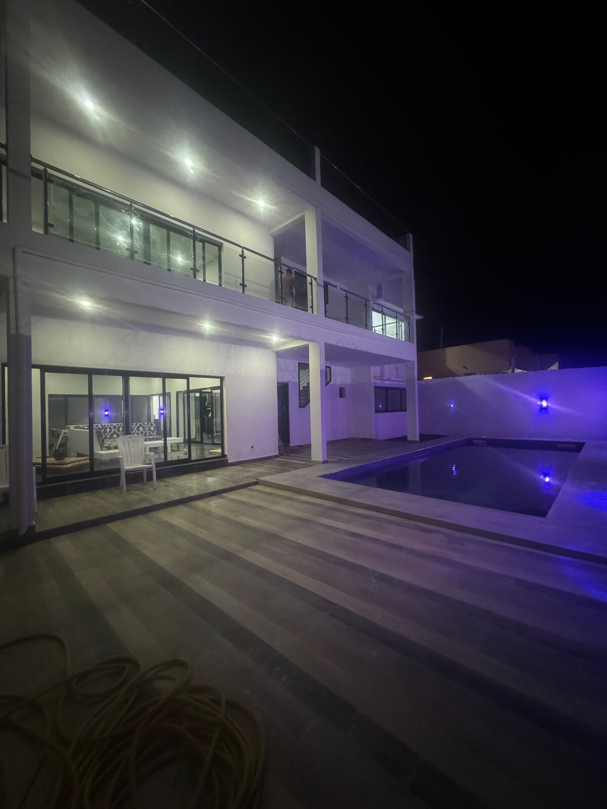 Üdvözlünk ebben a villában Nguerigne-ben, Ngaparou, Somone és Saly közelében.📍 Ideális villa a kényelmet, a nyugalmat és a kifinomultságot ötvöző szálláshoz. A villában 3 tágas hálószoba van, mindegyik saját fürdőszobával Fenséges bejárat egy biztonságos lakóhelyen •Parkolás • Nappali síkképernyős tévével •Bútorozott konyha Élvezd a nagy medencét, a nyugágyakat és a medence melletti társalgót, hogy felejthetetlen legyen a szálláshelyen eltöltött idő. Egy egyedi hely Szenegálban, ahol gyönyörű emlékeket szerezhetsz.