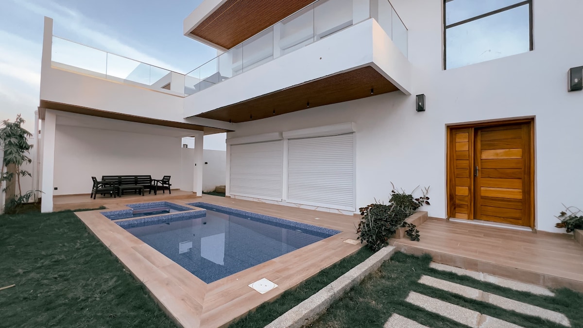 Villa Duplex de charme avec Piscine - 2 chambres, Salon, Cuisine Américaine entièrement équipée, Mezzanine, Wi-Fi Internet, Cuisine Externe, Terrasse Barbecue, Gardiennage 24h/24, 7j/7, à 300 m de la plage et à 5 min de Saly Centre Brand New Duplex Villa with Swimming Pool, 2 Bedrooms, Living Room with Internal Kitchen, Mezzanine, Wi-Fi, Exterior Kitchen with Barbecue Place, Security Guard 24/7, 5 minutes from Downtown Saly, 300m from the Beach