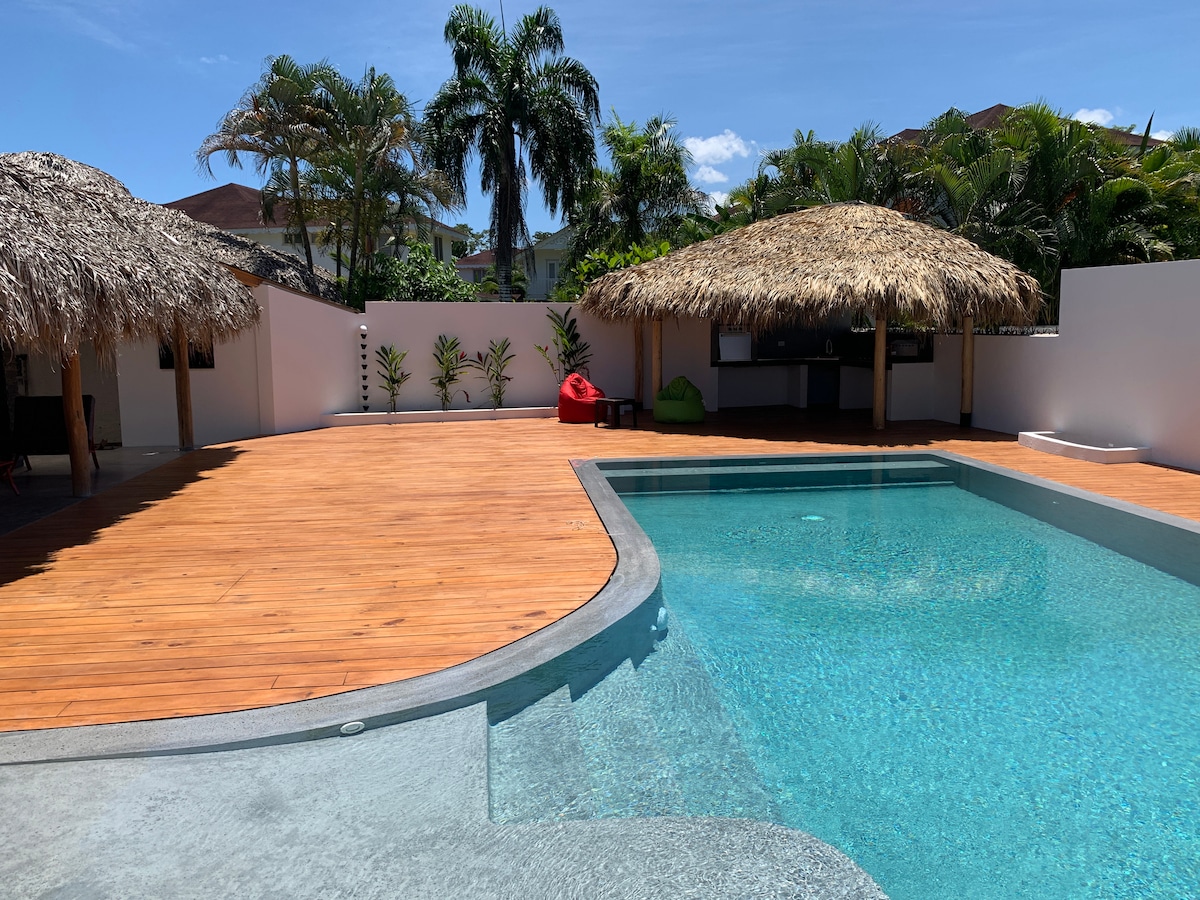 45 m² -es bungaló 2 terasszal a trópusi kertben, gyönyörű úszómedence, 100 méterre a strandtól, csendes és lakóövezet, közel Las Terrenas turisztikai központjához gyalog. Parkolóhellyel rendelkező, videomegfigyelő rendszer és riasztó által biztosított ingatlan. A bungaló új, tágas, minőségi szolgáltatásokkal Szeretnél egy kiadós reggelit, nem probléma, csak kérdezz!