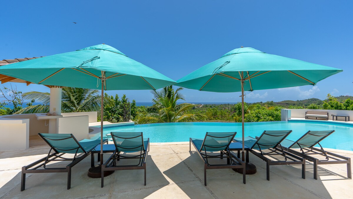 A spectacular WoW villa, in the mountains, overlooking Playa Coson. ***This is NOT a party villa. We have neighbors here. In the daytime low-level music and after 10 pm NO Music. A very spacious and comfortable, private villa, with all comfort. And a huge pool, a swim-up bar, and an infinity pool. The villa is 8 minutes distance from center of town, where you will have shopping facilities, restaurants, and bars. In the mountains. 4x4 car is necessary Electricity villa NOT included.