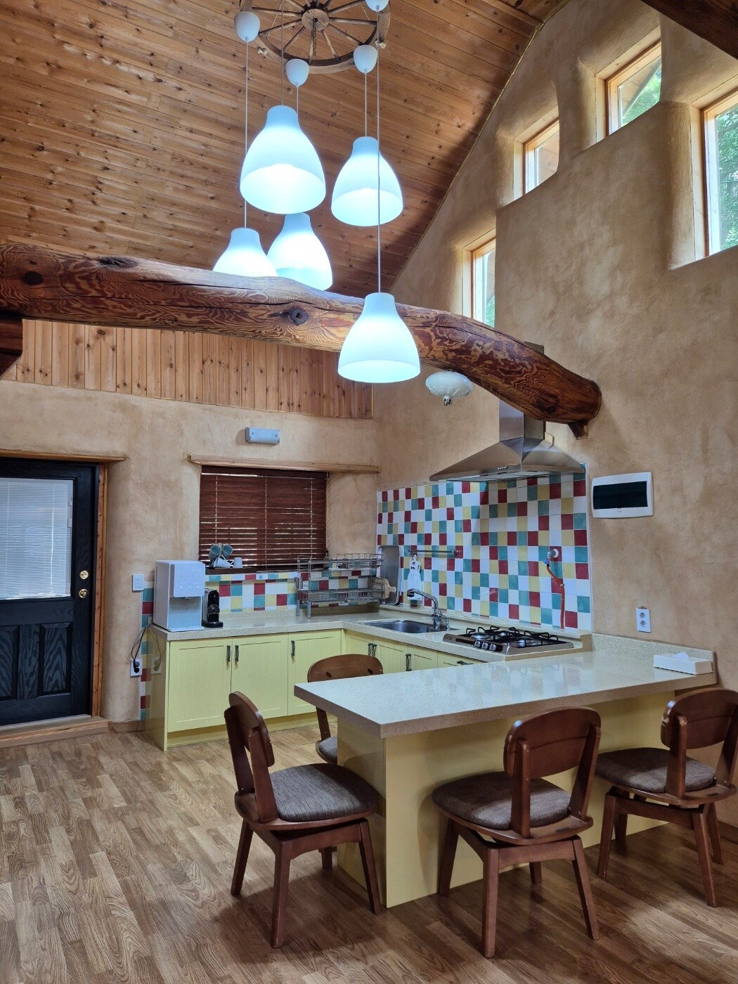 Ez egy 34 pyeong faház, amelyet egy vidéki ház híres Rojas cége épített, és a szigetelés jó, a szálláshely levegője pedig kellemes lesz. A német rendszerablak (Eun Chang-ho) használatával a szoba nyáron hűvös, télen meleg, és az első osztályú vízvölgy közvetlenül a szálláshely előtt (400 pyeong) (a felnőtt mellek mélysége mellett), a kisgyermekek vízi játszótere stb. Ez egy olyan hely lesz, ahol igazán pihenhetsz, és jól karbantartott szezonális virágokkal és fákkal töltheted fel az energiádat a várostól távol. * Tölgyfa tűzifával tábortűz készítése, * Egy pohár bor és Faszenes barbecue (Hoengseongwoo, tenger gyümölcsei stb.) * The sound of healing water ASMR, * Virágzó kert, * Havas táj, * Éjszakai csillagnézés * Napsütéssel teli terasz, amely a madarak hangját csiripeli... * Finn szauna * Szálláshelyünkön számos olyan vendég tartózkodik, aki szezonálisan ellátogat ide. Van néhány dolog, amit nem lehet rögzíteni a fényképeken, ezért kérlek, gyere, élvezd, és gyógyulj meg. ^ ^