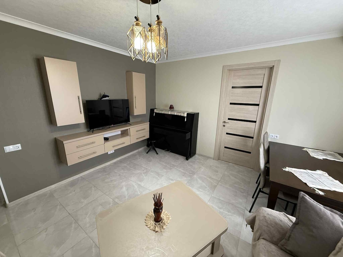 Cozy apartment in city center of Borjomi, near the Beauty Bridge. With 2 bedrooms (2 double rooms). Big living room with Kitchen. Equipped with all necessary things. New designed home, with new equipment. Everything is considered for your best holidays.