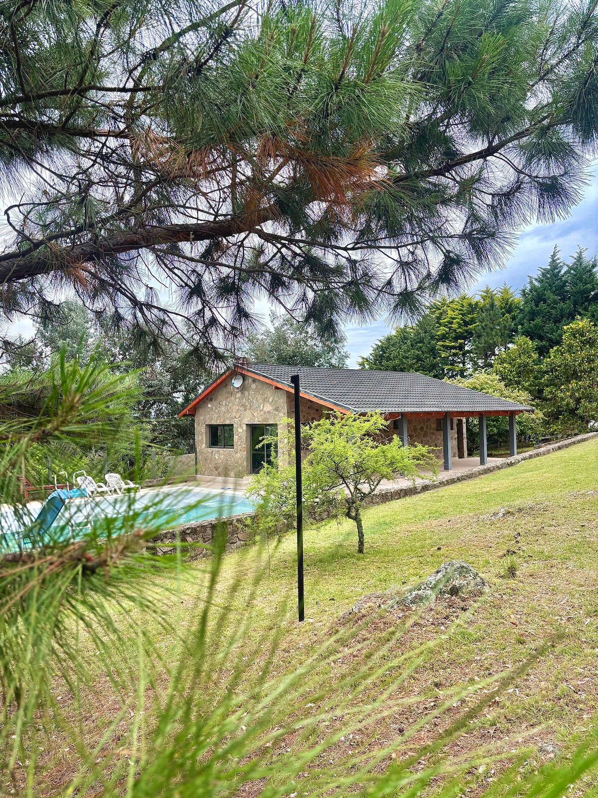 Lenyűgöző faház egy fenyőerdő közepén, amely körülveszi. A Rio del Medio 150 méteres homokos strandjára közvetlenül leereszkedő Pucuy egyedülálló helyen, a Córdoba-hegységben található. Magánélet, csend és nyugalom egy több mint 1 hektáros ingatlanon. A víkendház Chacras de Estancia Las Cañitasban található, 4 km-re Villa Bernától és 8 km-re La Cumbrecitától.