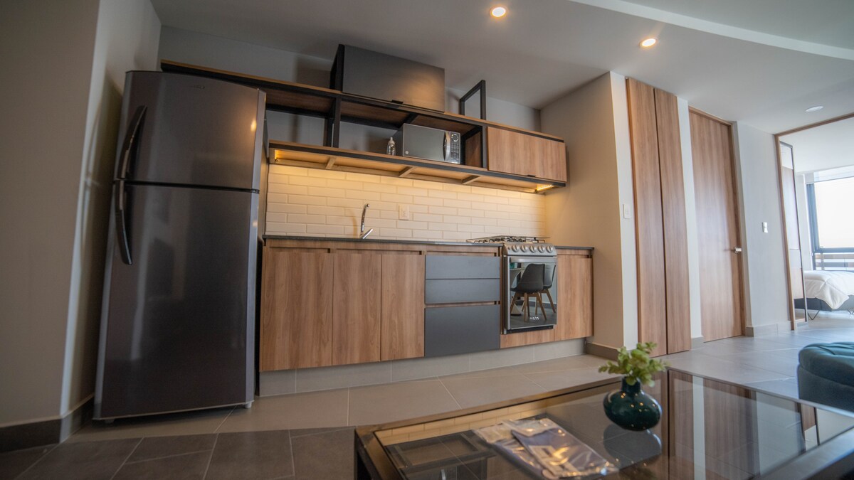 Bright, modern high-rise space on the 18th floor with open city views. Ideal for couples, friends, and relaxed longer stays 3 Queen beds for up to 6 guests Equipped kitchen Large-capacity washer and dryer machine Electric blinds and high-speed Wi-Fi for home office Enjoy a 24/7 GYM, rooftop, and in-building parking for 2 cars Pet-friendly building with security service and 24/7 security cameras Quick access to Cholula (5 min away), Angelópolis (8 min away), and key attractions