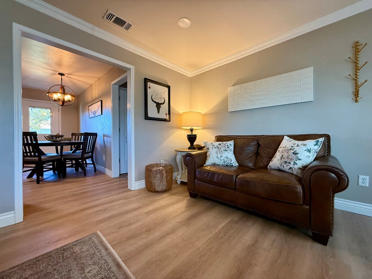 This stylish San Angelo townhome blends charm with modern comfort—perfect for a cozy stay. From the warm brick exterior and glowing evening lights that welcome you home, to the chic interior featuring vaulted ceilings, rich cabinetry, and every detail has been thoughtfully crafted. The open living area flows seamlessly into a modern kitchen with a stunning brick island and industrial-style barstools. This space is designed to feel like a boutique retreat with all the comforts of home.