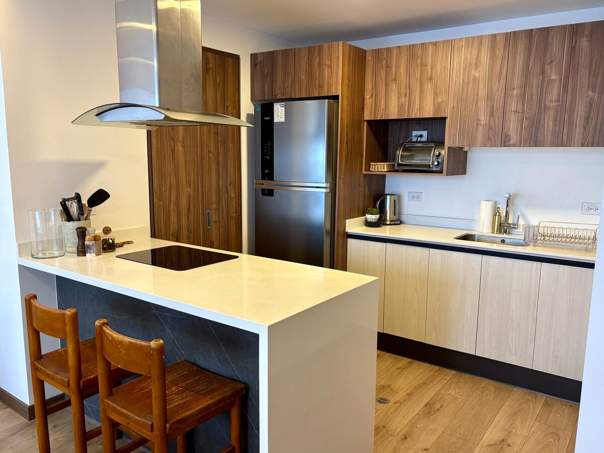 Modern, két hálószobás lakás Quito legjobb helyén, a Marriott Hotel szektorban, néhány lépésre a Spanyol Konzulátustól, a McDonald's-tól, a Crepes & Waffles-től, a FOGO DE CHÂO-tól, a Burger Kingtől, a Mall el Jardintól, a minisztériumoktól, az egyetemektől és a metrómegállóktól. Ideális utazóknak, pároknak, minden kényelmi szolgáltatással rendelkező családoknak a város szívében. Biztonságos épület, 24 órás magánőrökkel 8 percre az Atahualpa Olimpiai Stadiontól 8 percre a Coliseo Rumiñahuiból 10 perc. P Toros