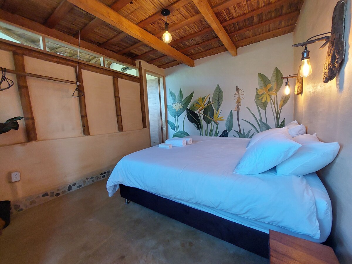 Imagina despertar con el canto de los pájaros y el susurro del viento en una acogedora cabaña ecológica en San Carlos, Antioquia. La Cabaña Samin, construida en barro, paja y madera, es perfecta para personas que buscan calma y conexión: cama queen, baño privado, cocina equipada, WiFi y terraza con vista al bosque. Disfruta piscina compartida, granja y cascadas cercanas. Un refugio íntimo para crear recuerdos únicos