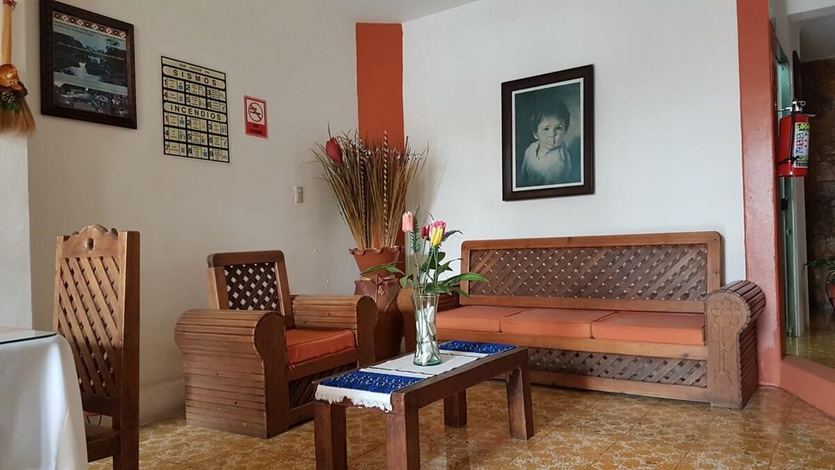 It is a cabin with a lot of sunlight, very quiet and perfect for resting. Surrounded by gardens and an orchard with fruit trees, chickens, rabbits, ducks and turkeys. You can walk and enjoy the gardens and the orchard. Located in a traditional neighborhood of San Cristóbal, 5 minutes by car and 20 minutes walking from the city center. We have garage to your car. Know the magic of the neighborhoods of the city. We have 2 mountain bikes. We advise you on your tours in Chiapas