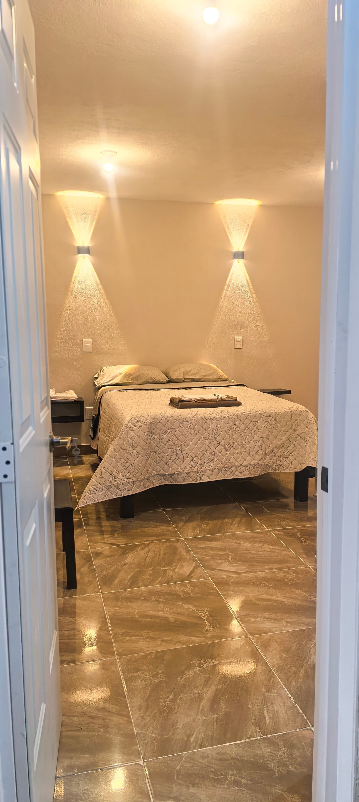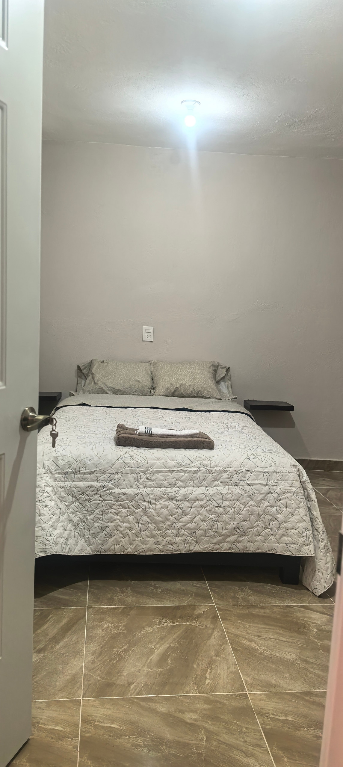 Disfruta de la sencillez de este alojamiento tranquilo y con una excelente ubicación. Perfecto para cuatro personas. consta de una habitación amplia con dos camas matrimonial, baño propio dentro de la habitación y acceso a cocina compartida, también wifi, TV, agua caliente en la regadera y sobre todo una ubicación excelente, a tan solo 15 minutos caminando al centro de la ciudad, y a una cuadra de plaza Chedraui, Cinépolis, farmacias, Coppel, teatro de la ciudad, etc.