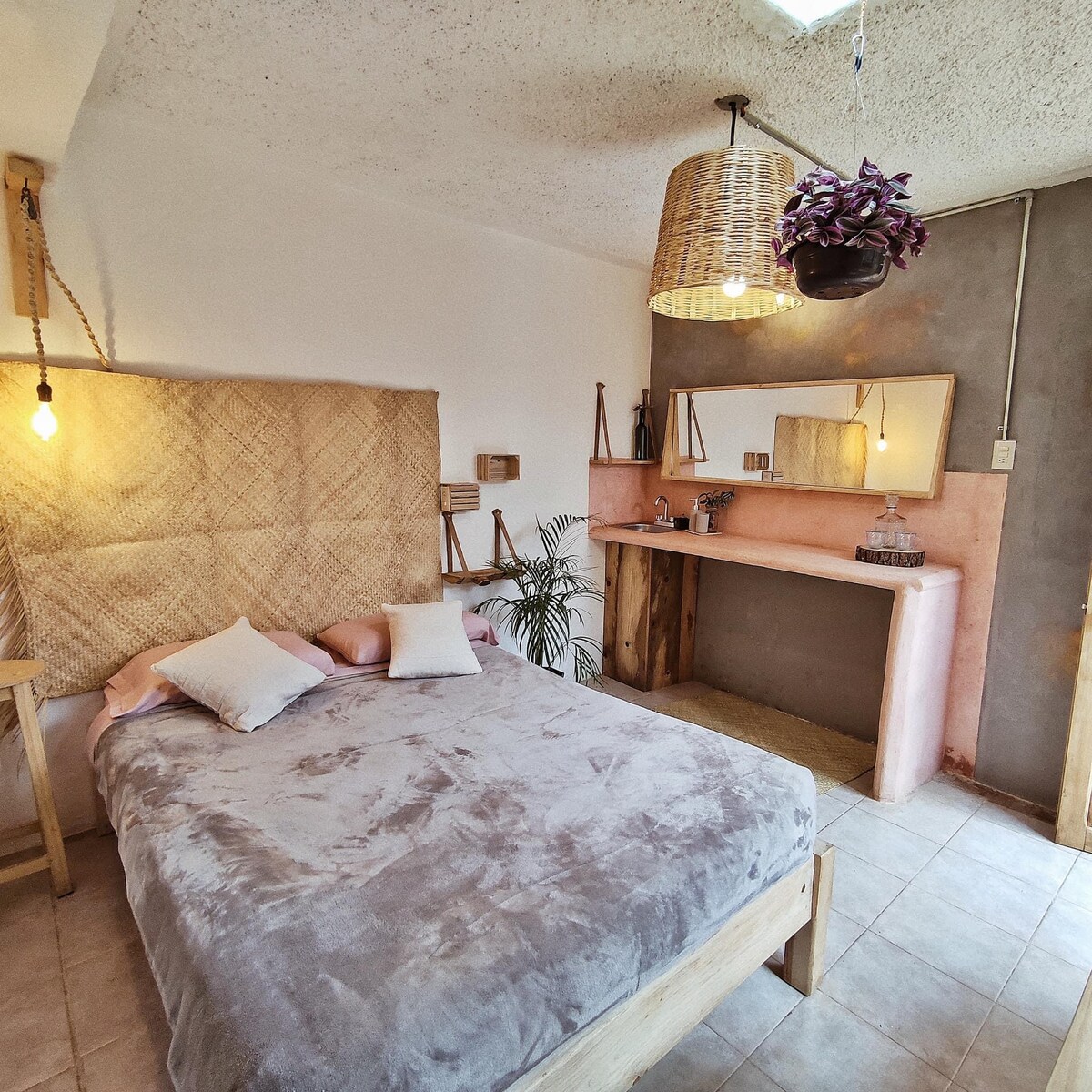 Élvezd a kényelmet és a magánéletet a San Cristóbal de las Casas szívében található hangulatos kétágyas szobánkban. Tökéletes pároknak vagy egyedül utazóknak, akik békés menedéket keresnek. Ez a szoba kényelmes franciaággyal, saját fürdőszobával és bájos dekorációval rendelkezik, amelyet Chiapas élénk kultúrája ihletett. Maradj kapcsolatban ingyenes Wi-Fi-vel, és használd ki hostelünk barátságos légkörét, központi elhelyezkedését és nagyszerű kényelmi szolgáltatásait.