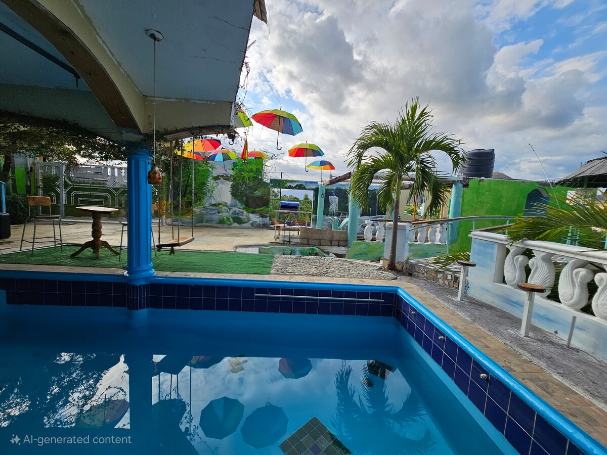 Disfruta de una escapada única en esta acogedora villa rural, donde la tranquilidad del campo se combina con el confort moderno. Relájate junto a la piscina, disfruta de un día en el quiosco o contempla la naturaleza desde tu habitación equipada con camas dobles, TV y baño privado. Perfecta para desconectar y vivir una experiencia única en el corazón de República Dominicana. Disponible para eventos y mucho más.