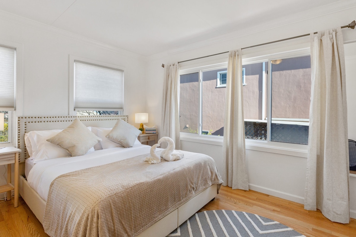 Üdvözlünk a kiruccanásodon! - Újonnan felújított, századközepi modern otthon régi és új dekorációval. - Élvezd a luxusszállodai hangulatot a barátságos légkör kényelmében. - Közel az óceánhoz, frissítő óceáni szellővel és siklóra nyíló kilátással. - Modern kényelmi szolgáltatások, beleértve az 55hüvelykes 4K ROKU TV-t, a prémium Simmons matracokat és a frissített konyhai készülékeket. - Könnyű hozzáférés a tömegközlekedéshez, éttermekhez és üzletekhez. - A közeli látnivalók közé tartozik a Thornton State Beach és a Fort Funston.