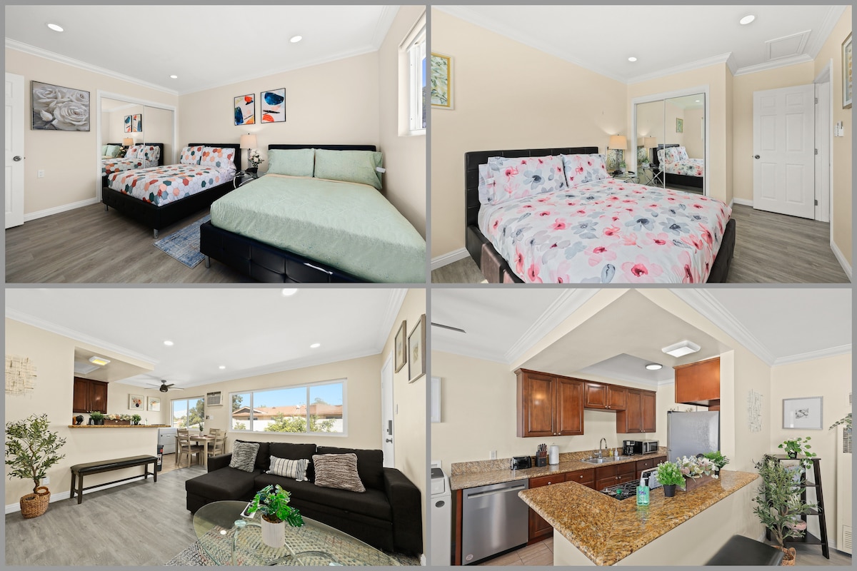 This beautifully designed 4-bedroom apartment unit offers groups and families a fun and enjoyable place. Need more rooms? Consider booking another room at this location! Send us a message for more details. Approximate driving distance to these locations: Downtown LA: <10 miles Universal Studios: 20 miles Los Angeles International Airport (LAX): 25 miles Santa Monica beach: 25 miles Disneyland: 30 miles