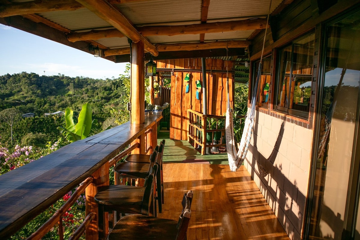Üdvözlünk elbűvölő víkendházunkban! Egy természetes paradicsomban fekszik, és lélegzetelállító kilátást nyújt a hegyekre. Ideális a leválasztáshoz, a tiszta levegő belélegzéséhez és a természethez való visszatéréshez. Tökéletes romantikus kiruccanásokhoz vagy családi kalandokhoz. Különleges a távmunkához, ha internetkapcsolatról van szó, nagysebességű Wi-Fi-vel. Foglald le a szálláshelyedet, és felejthetetlen élményben lesz részed! Mindössze 25 percre Playa Dominicaltól és 20 percre San Isidro del General belvárosától! Hűvös éghajlattal!