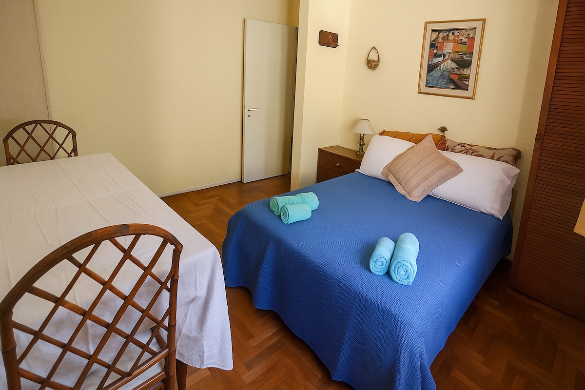 „Augusto” privát szoba, világos és kényelmes, kulccsal. A közös terasz grill és virágok, ideális a szabadtéri kikapcsolódáshoz. Kiváló elhelyezkedés, közel a folyóhoz, a tengerparti úthoz, a közlekedéshez és a rendezvényekhez. Érkezés 14:00 és 18:00 között · Távozás 11:00-ig Csecsemők és gyermekek nem szállhatnak meg itt: a ház nem rendelkezik a szükséges biztonsági intézkedésekkel.