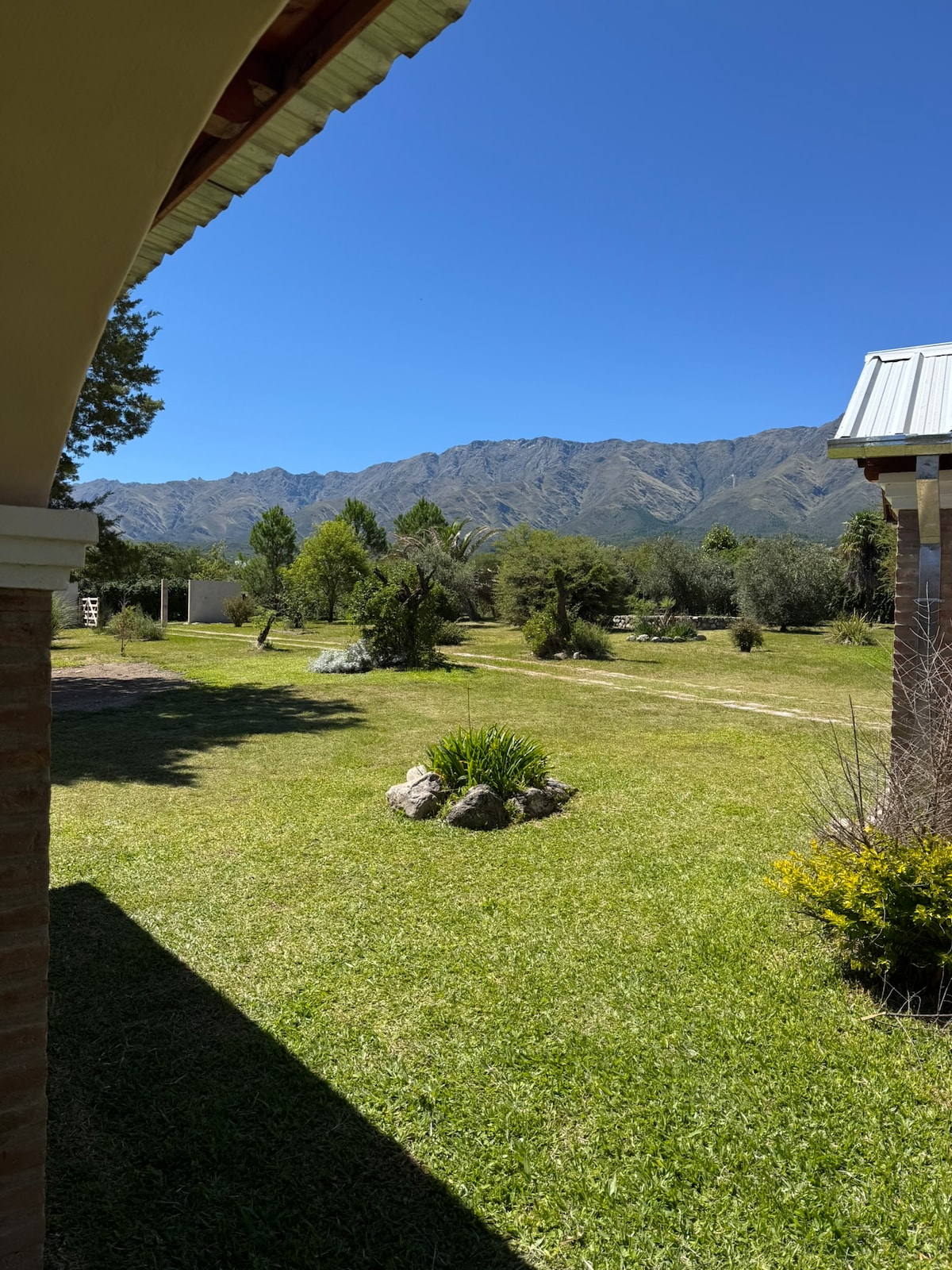 Hermosa casa en Las Rabonas, Traslasierra, Córdoba, con una superficie cubierta de 100M2, en un terreno de 900M2, vista trasera al cerro Champaquí, living amplio con hogar a leña, cocina con heladera, microondas y vajilla para 4 personas, dorm. en suite con cama King, y otro con dos camas. Garaje cubierto y quincho con parrilla. Cuenta con aire acondicionado en el living, WIFI y ropa blanca. Las Rabonas está pegado a Nono, el centro del pueblo y los principales balnearios quedan muy cerca.