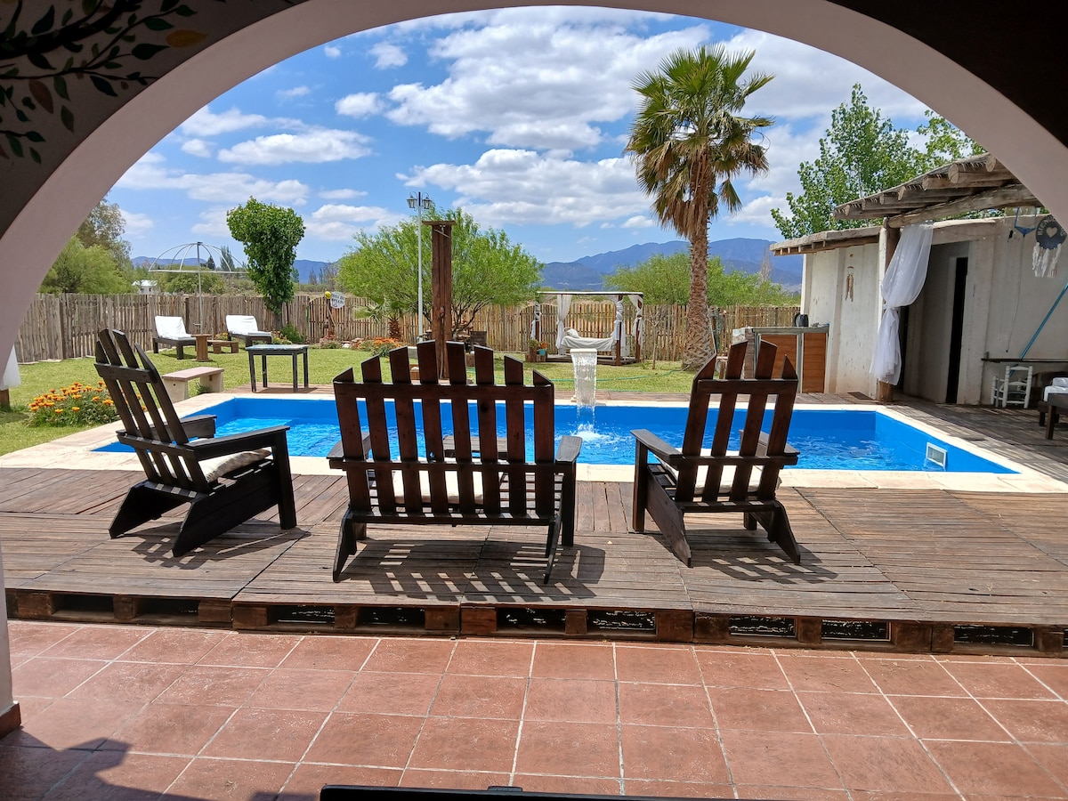 Acogedor complejo en Jáchal, San Juan. Ubicadas en un entorno tranquilo y natural, ofrecemos tres casas ideales para descansar y desconectar. Cada una cuenta con dos habitaciones, baño completo, cocina comedor y galería con asador. El complejo incluye piscina, Wi-Fi, estacionamiento y un amplio espacio verde. Además somos Pet friendly. Un punto estratégico para explorar la región y disfrutar de verdadera tranquilidad. ¡Te esperamos para que dejes tu huella y te lleves momentos inolvidables!