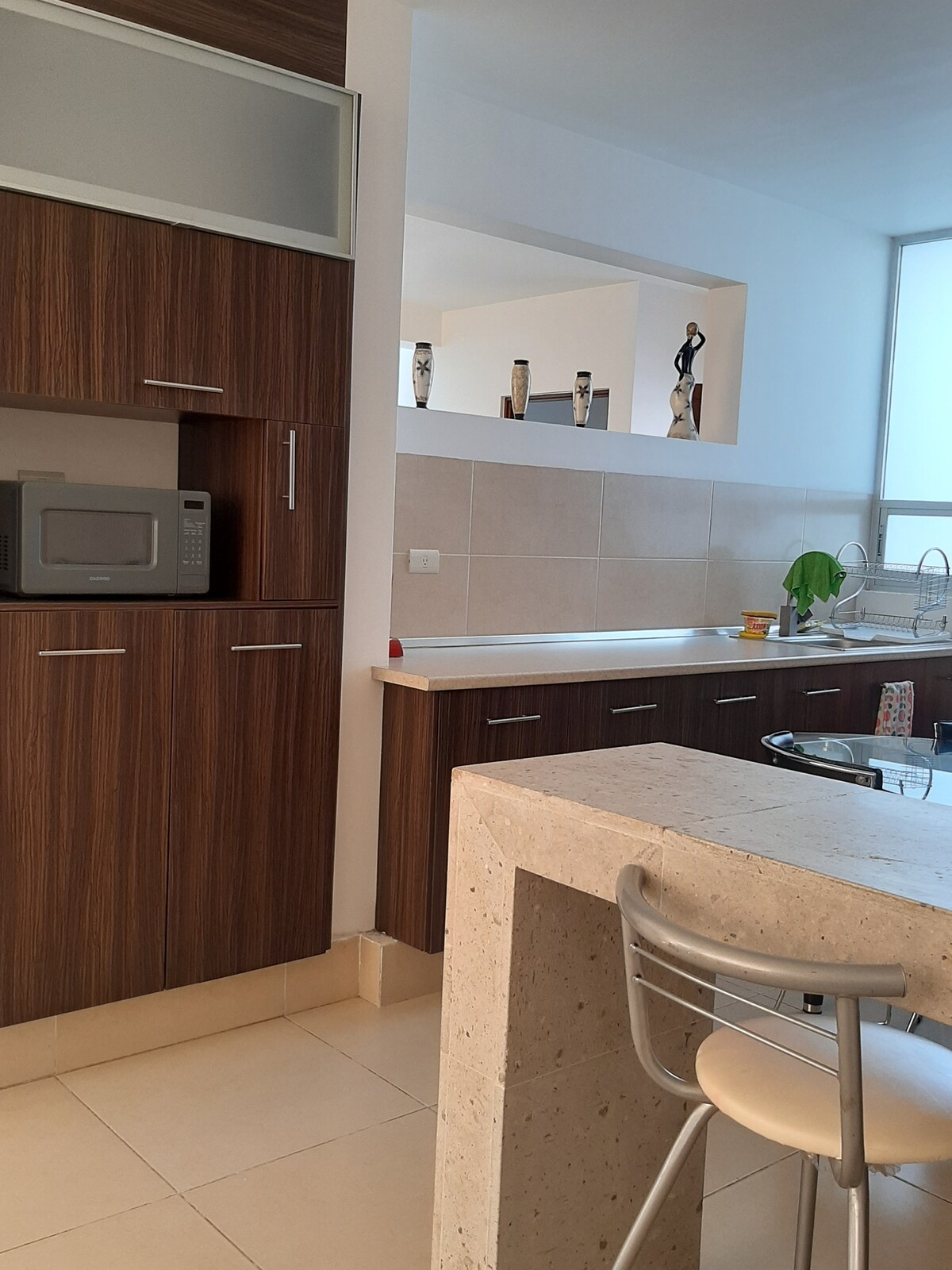 Ez a hosszú távú foglalásokhoz teljesen felszerelt, 2 hálószobás/2 teljes fürdőszobás, 84 négyzetméteres társasházi lakás a földszinten található Jardines de Santiagóban található, ideális 5 fős családoknak, akiknek az El Refugio, a Juriquilla, a Zibata, a Pie de la Cuesta Ave és a Marques és a repülőtér közelében kell lenniük. A Montes Pirineos egyik biztonságos, zárt közösségben található, és 1 parkolóhellyel rendelkezik Van hátsó udvara, gázos grillje, víztisztítója, minisplit légkondicionálója, kiváló minőségű matracai, amelyekkel biztosak vagyunk benne, hogy élvezni fogja a szállást, méghozzá tisztességes áron.