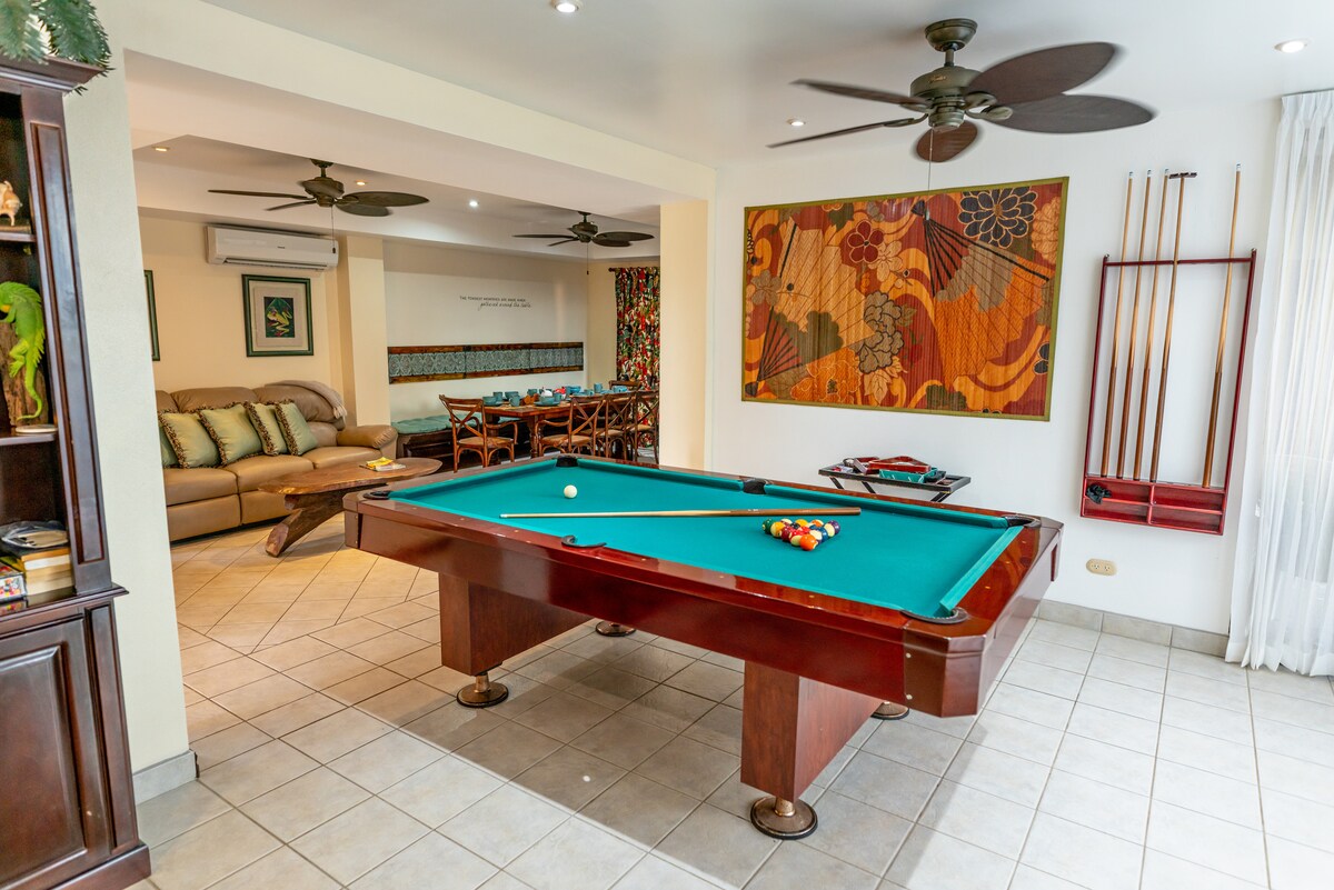 Óceánpart. Csak 2 óra a Juan Santamaría repülőtértől. Élvezd a látványos kilátást és a tenger hangját, miközben a medencében vagy, reggelizel vagy pihensz. Kiválóan alkalmas szörfözésre. Az apály idején a zátony medencéi biztonságosak a gyermekek számára, ideálisak a sznorkelezéshez. Az iguánák, a színes arapagájok és a rákok a környezet részét képezik. Közel a lombkoronához, búvárkodáshoz és horgászhelyekhez. Legfeljebb 6 fő esetén 2 szoba, 7-8 fő esetén 3 szoba