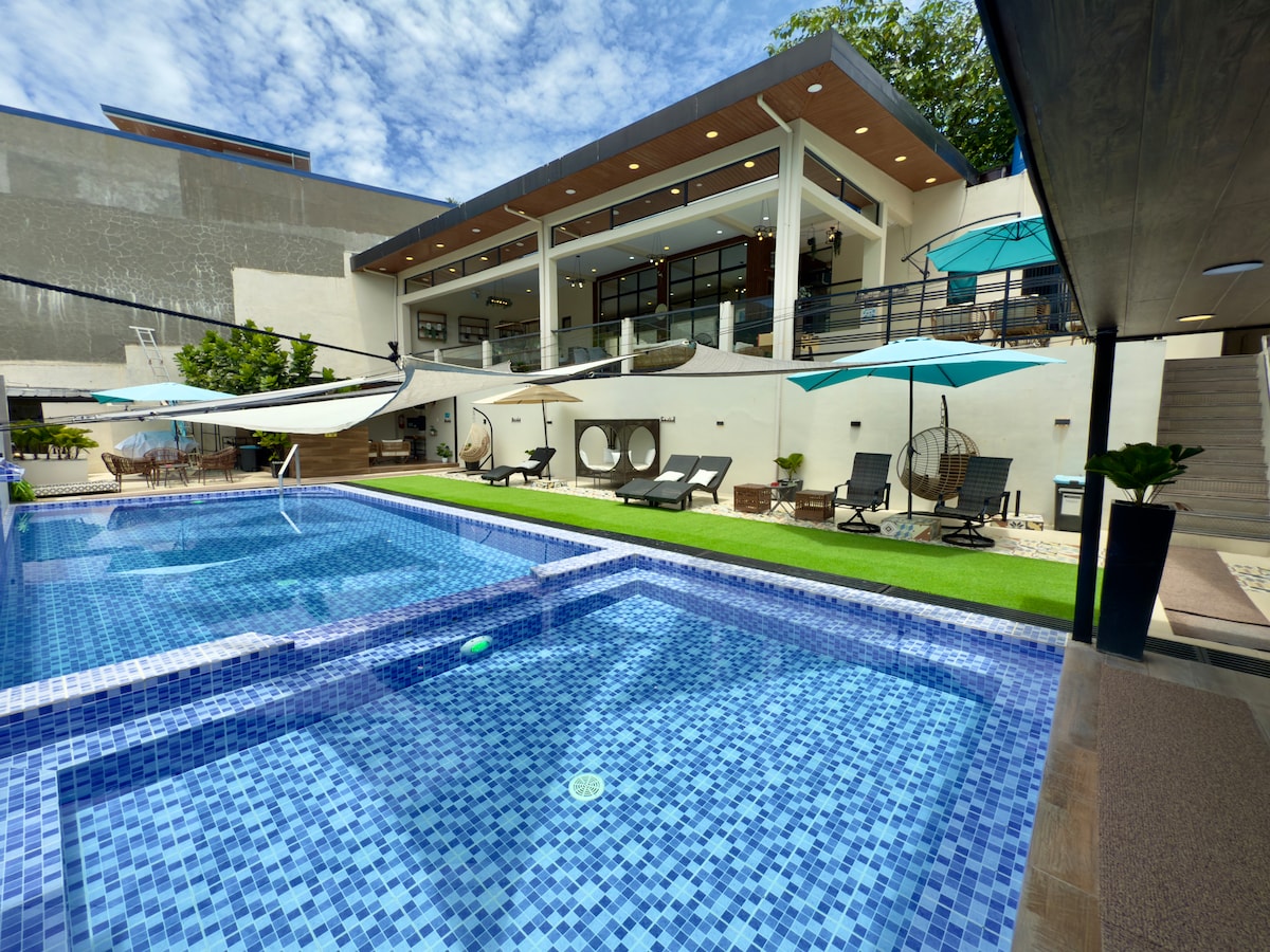 Pihenj és lazíts ebben az újonnan épült víkendházban, amely merülőmedencével és tágas kerttel rendelkezik. Teljesen légkondicionált, hangulatos víkendház tágas, loft stílusú nappalival és modern fürdőszobával, fürdőkáddal és forró zuhanyzóval. Tágas kerttel és hátsó udvarral rendelkezik, amely tökéletes a főzéshez/grillezéshez és a pihenéshez a medencénél. 100 Mbps sebességű gyors internettel rendelkezik. Az egész hely a tiétek lesz. Tökéletes egy pihentető kiruccanáshoz vagy távolról történő munkavégzéshez. Sampaloc Lake - 20 perc alatt elérhető SM San Pablo - 15 perc távolságra