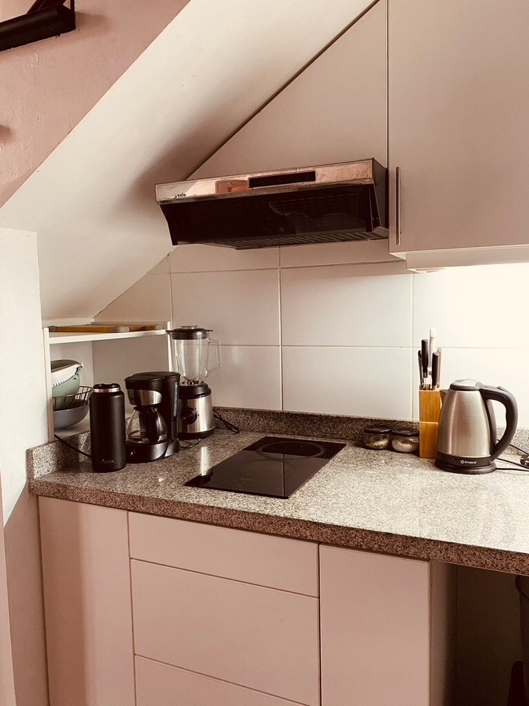 Te damos la bienvenida a nuestro loft, perfecto hasta para 3 personas(1 cama más 1 sofa cama), con un espacio cómodo y moderno de 30m2. Ubicado en un tercer piso con entrada independiente. Tengo una cochera donde caben sólo motos, si tienes auto puedes dejarlo frente a la puerta principal de la casa. Además hay un parque a una calle de distancia para poder hacer tus cardios.