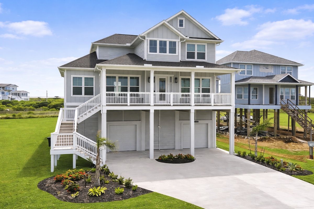 NEW Beachfront Construction! Truly a Unicorn:🦄 LOCATION, LUXURY, and So Nice to Have NEW! A Surfside legjobb éttermeitől és strandjától pár lépésre található! Élvezd a függőágyakat és a játékokat a ház alatt. Mássz fel a lépcsőn egy fantasztikus árnyékos fedélzetre, ahonnan a San Luis-hágóból egészen a mólóig néz! Több mint 180 fokos akadálymentes kilátás. A SunDeckre nyíló hálószobák és a csillagnézés 🔥 tűzrakóhellyel YouTube Beachfront Luxe videóhoz 125 $ takarítási díj, és összesen csak 75 $, legfeljebb 2 háziállatért a teljes foglalásért!