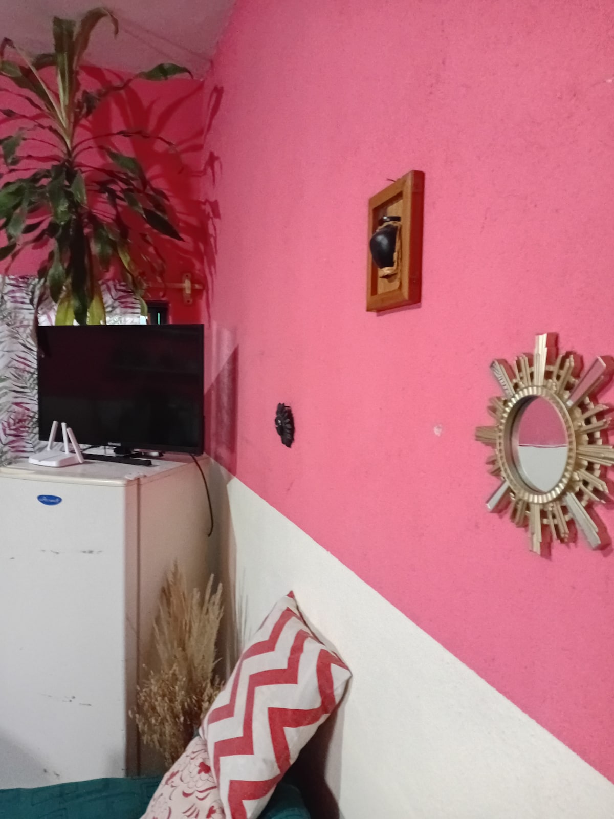 Habitación estándar, tiene servicios básicos. En la casa hay una pequeña tienda por si se ofrece algo de botana o algún producto. La televisión tiene tv de paga. Agua caliente. Lugar muy tranquilo para descansar, es en el piso de arriba. Duda o mensaje manda y enseguida lo platicamos. El internet es más estable en el área de la sala.