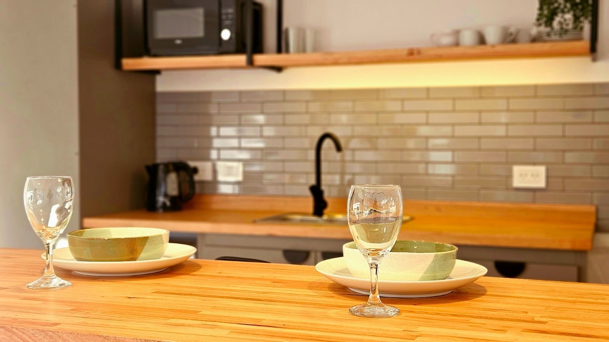 Központi mono környezet kialakítása , új , 32 m2 funkcionális bútorokkal, 1,60 x 1,90-es franciaágy, teljes fürdőszoba kabinnal és dupla zuhanyzóval. Teljesen felszerelt edények, turmixgép, gyümölcscentrifuga, elektromos vízforraló és kenyérpirító, hűtőszekrény fagyasztóval , tűzhellyel és gáztűzhellyel, mikrohullámú sütővel, tisztítószerrel. 43hüvelykes Full HD Smart TV: Netflix, WiFi, Fűtés radiátorral, meleg víz kazánnal, elektromos portás, Közös terület: Mosógép/szárítógép (ingyenes)és kültéri grillező