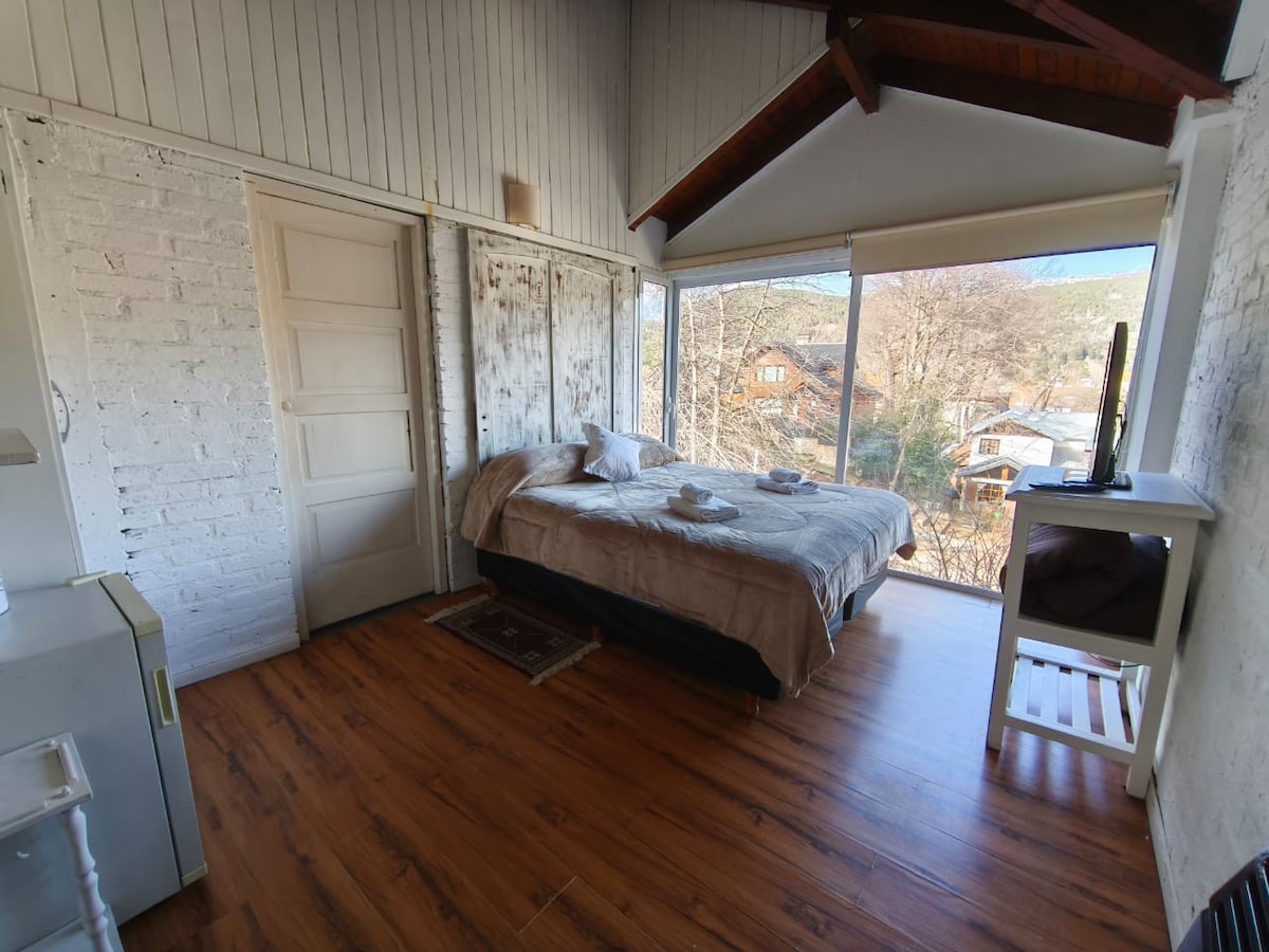 Pihenj otthonos hegyi otthonunkban, és lenyűgöz a hihetetlen patagóniai tájakra nyíló gyönyörű, zavartalan kilátás. Békés és egyedi szálláshely egy kétszemélyes hálószobával és egy kétágyas szobával nagy emeletes ágyakkal - tökéletes egy családnak. Élvezd a csodálatos napfelkeltét és naplementét a 16 méteres teraszunkon, amelyet a természet vesz körül, és alkalmanként kavarog a fejünk felett a kondor. Kevesebb mint 10 percre a 40-es úttól és 20 percre San Martin de los Andes belvárosától.