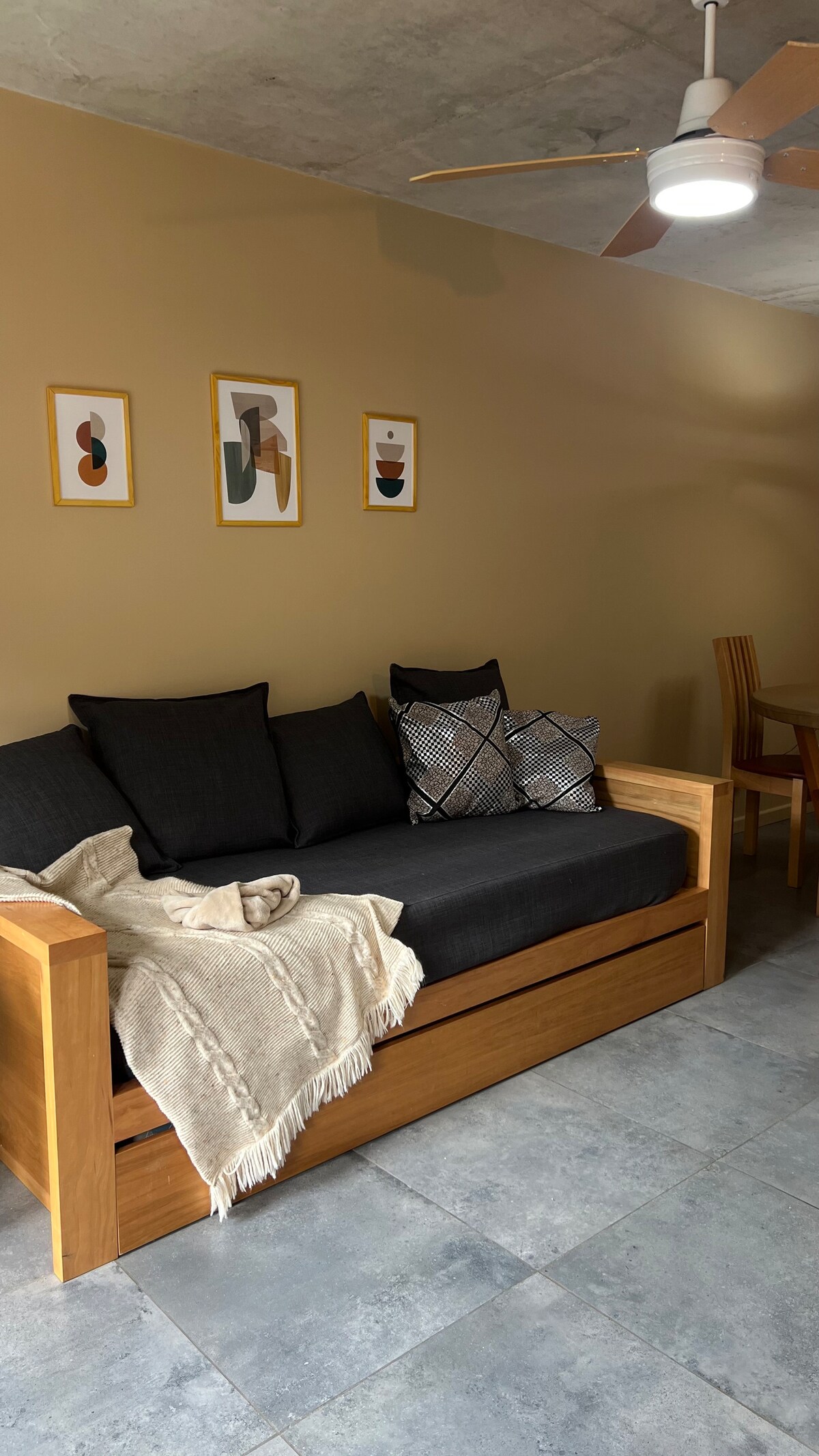 Gyönyörű, újonnan kiadott, 40 négyzetméteres stúdió, nagyon világos és modern, gyönyörű kilátással az első emeleti erkélyről. Meleg és kényelmes légkörrel rendelkezik, és 1 queen sommier és 1 egyszemélyes, kiváló minőségű ággyal rendelkezik; szuper felszerelt konyha reggelizőbárral és teljes fürdőszobával. Intelligens TV kábellel és Wi-Fi-vel. A központban található, 3 háztömbnyire a főúttól, 8 háztömbnyire a tótól és pár lépésre olyan üzletektől, mint az éttermek, a rotiserías és a szupermarketek. Egy álomlakás.