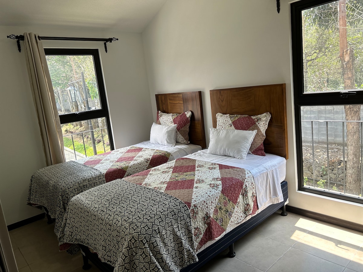 Ébredj lélegzetelállító vulkánkilátásra, és élvezd a reggeli kávédat egy privát tetőteraszról ebben a tágas, négy hálószobás otthonban, amely mindössze néhány percre található Antigua központjától. Otthonunk tökéletes családok, barátok és esküvői társaságok számára, és ötvözi Antigua varázsát a modern kényelemmel, a biztonsággal és a valódi pihenéshez szükséges térrel. A szálláshely egy nonstop biztonsági szolgálattal rendelkező, nyugodt, elkerített lakóközösségben található, így éjszaka is élvezheted a nyugalmat, miközben autóval csak egy rövid útra vagy Antigua éttermeitől, kávézóitól, romjaitól és élénk kultúrájától.