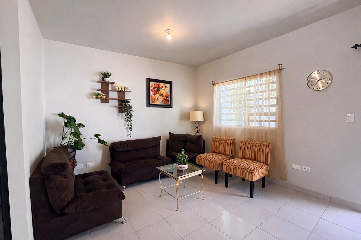 Üdvözlünk a Casa del Ángelben! Egy olyan hely, amelyet úgy alakítottunk ki, hogy kényelmes pihenést biztosítson a szálláshelyen töltött időd során. 🌳Park az utca végén 🛣️ 5 percre a Laredo és a Colombia autópályák bejáratától az Egyesült Államokba 🛒 6 percre a Plaza Fiesta Anahuac-tól 🏥 6 percre az IMSS Clinica 6-tól 🏫 11 perc UANL Egyetem | Volcan Stadion Tigres 🚇 10 perc sétára a Tapia metróállomástól 🏟️ 27 perc BBVA Monterrey Stadion Mindössze három háztömbnyi sétára találsz üzleteket is, köztük 7-Elevent és olyan drogériákat, mint a Farmacia Guadalajara vagy a Similares.