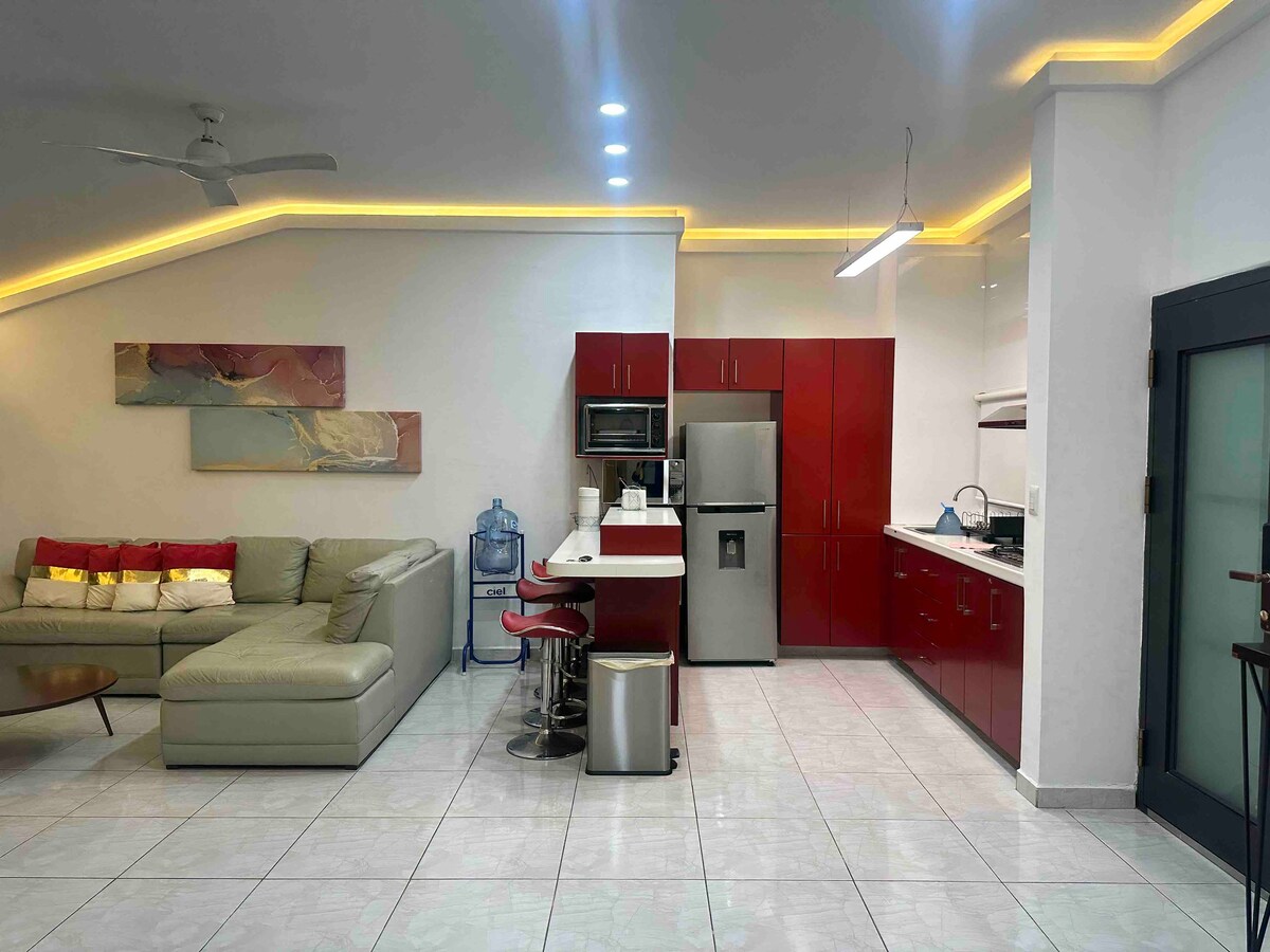 Kényelmes és modern mini loft minimalista stílus a Manzanillo strand egy nagyon exkluzív területén, nagyon közel a La Audiencia strandhoz, Manzanillo legjobb és legbiztonságosabb strandjának számít, amelyet a SEMARNAT építészet és légkör „Playa Limpia” minősít, lábon pedig úszómedencével, az egyik oldalon hegyi természet veszi körül, a másik oldalon pedig a tenger, a szellő és a friss levegő. A nyugalom érdekében minden foglalás során nagyon szigorú fertőtlenítési és higiéniai előírásokat alkalmazunk.