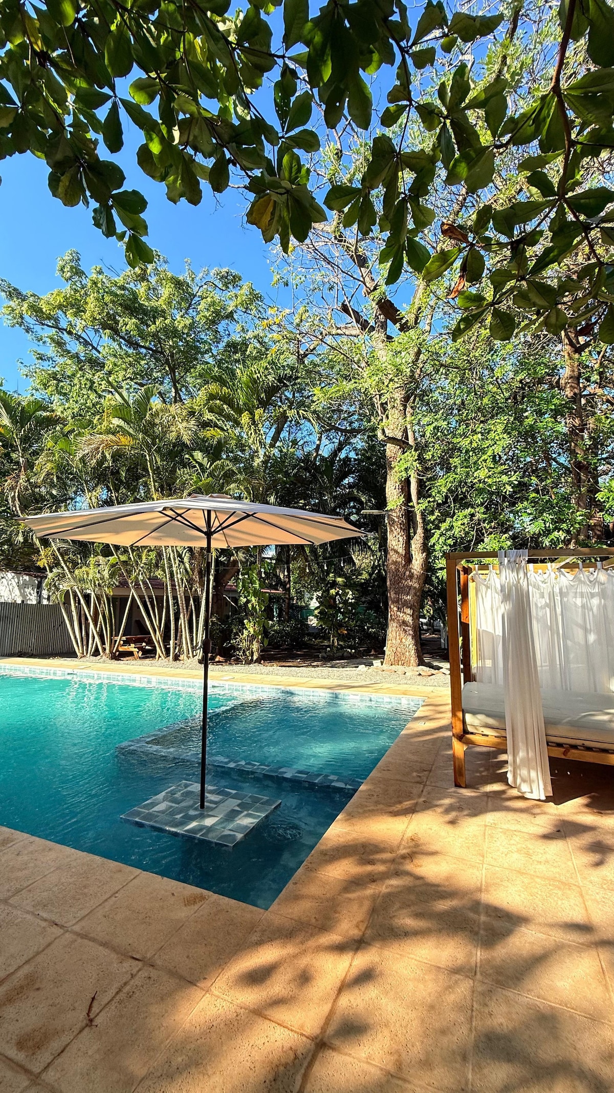 This is a suite at Balancé Surf & Yoga Retreat, a boutique waterfront hotel in Playa El Tunco; this is not a private house. This suite sits next to of our Bamboo trees near the Yoga Studio. The room has option for 1 king bed OR 2 twin beds. The room has a private terrace with an El Salvadoran hammock. All rooms at Balancé have hot water, lush bedding, A/C, and purified drinking water that we refill throughout your stay.