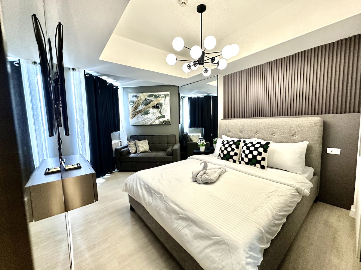 Üdvözöljük a The Meydan Suites at Azure Northban, a japandi stílusú stúdióban San Fernandóban, Pampangában. Manilától mindössze 1,5 órányira található tágas, kétágyas stúdiónk teljes konyhával, egy fürdőszobával és saját erkéllyel rendelkezik, Azure csendes oldalán. Vendégenként és műszakonként 200 ₱-ért üdülőhelyi kényelmi szolgáltatásokat vehetsz igénybe, például hullámmedencét, strandmedencét és szabadidős létesítményeket. Tökéletes menedék pároknak, családoknak vagy barkadáknak.