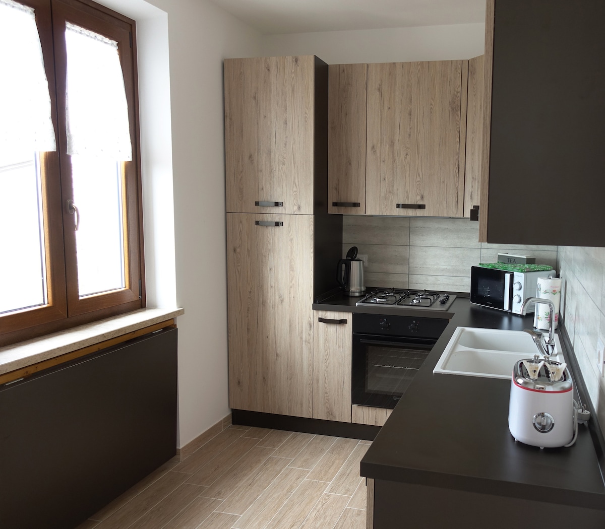 Felújított, 60 négyzetméteres lakás az 1300-as évekből Szauna, szabadon álló fürdőkád, nagy zuhanyzó. A bájos történelmi központ szívében található, egy rövid sétára a Garda-tó partjától. Az egyedi stílusú lakás két emeleten terül el, az első emeleten található a nappali konyhával, étkezőasztallal és nappalival, míg az emeleten található a gyönyörű alvóhely, amely a varázslatos gyógyfürdővel keveredik. És egy meleg, barátságos légkör.