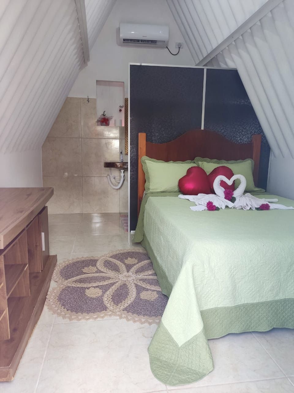 Espaço completo para até duas pessoas, ou com possibilidade para mais com colchão adicional.