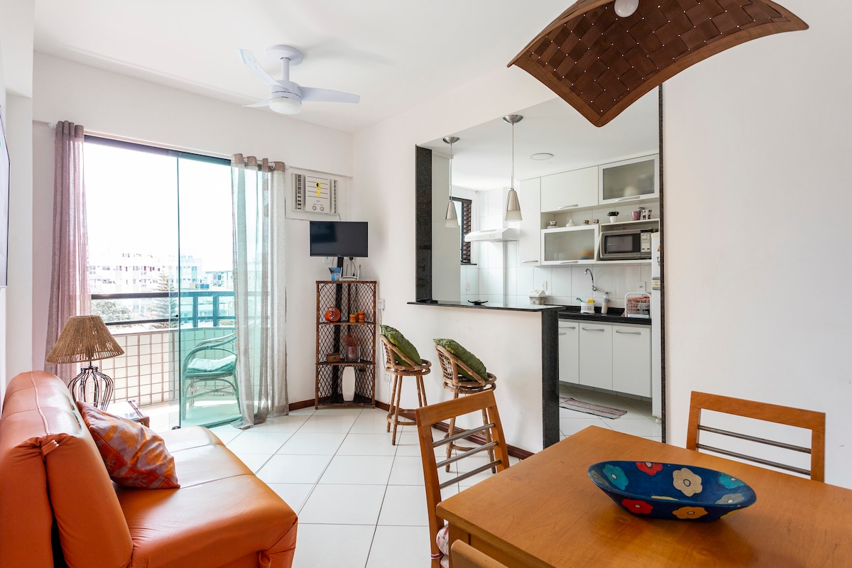 Hospede-se em um apto completo, moderno e aconchegante, ideal para famílias e casais. Destaques: -Condomínio familiar -Estacionamento incluso -Wi-Fi -Cozinha equipada + roupa de cama e banho -Ar Condicionado -Berço de bebê sob solicitação -Próximo a mercados, padarias e farmácias Estamos a 3 km da Praia das Dunas e Praia do Foguete, com fácil acesso de carro e aplicativos às principais praias de Cabo Frio e também a Arraial do Cabo.