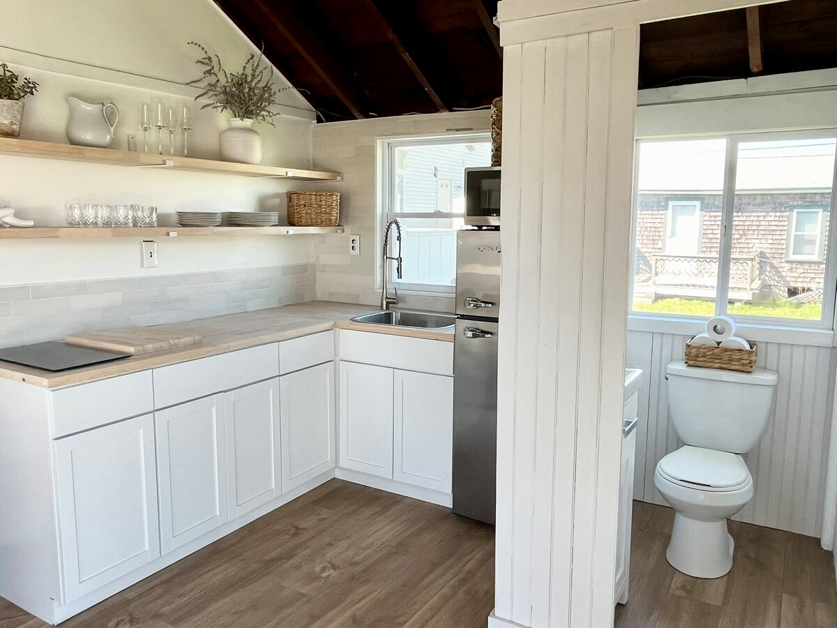 Rendkívül nyugodt és ugyanolyan stílusos, ez a vízparti házikó a Great Islanden az a menedék, amelyre vágytál! 2 hálószoba és 1 gyönyörűen csempézett fürdő, valamint egy nyitott szakács konyhája és nappali ablakai vannak mindenhol, ahonnan kilátás nyílik, soha nem fogsz belefáradni! Pihenj a fedett verandán, vagy sétálj mezítláb a füvön keresztül a mélytengeri dokkhoz és a szomszédos strandterülethez. Csak pár percre van Galileától, az éttermektől, a Block Island Ferrytől, a fehér homokos strandoktól, a szörfözéstől és még sok minden mástól!