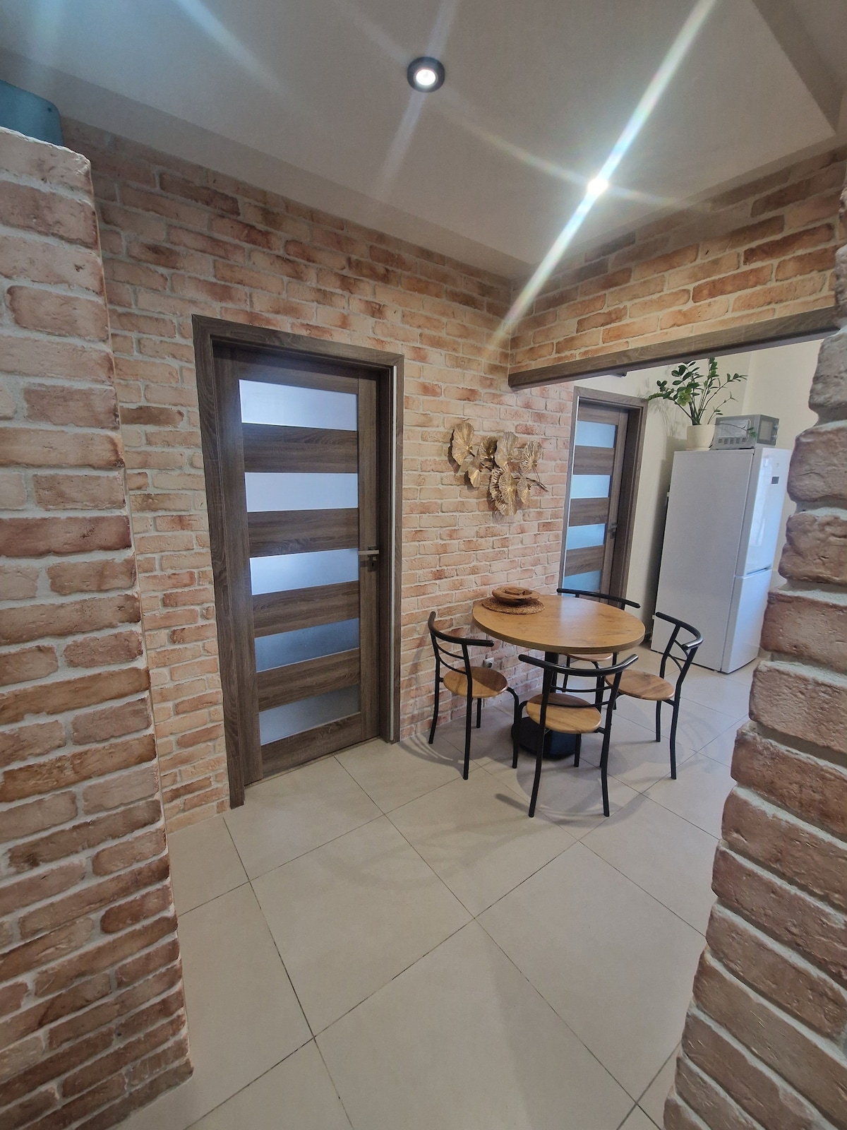 Lakásunk 4 fős, 2 szobás konyhával, fürdőszobával és két erkéllyel rendelkezik. A város központjában található, 5 perc sétára a régi város. A lakás közvetlen közelében van két park.